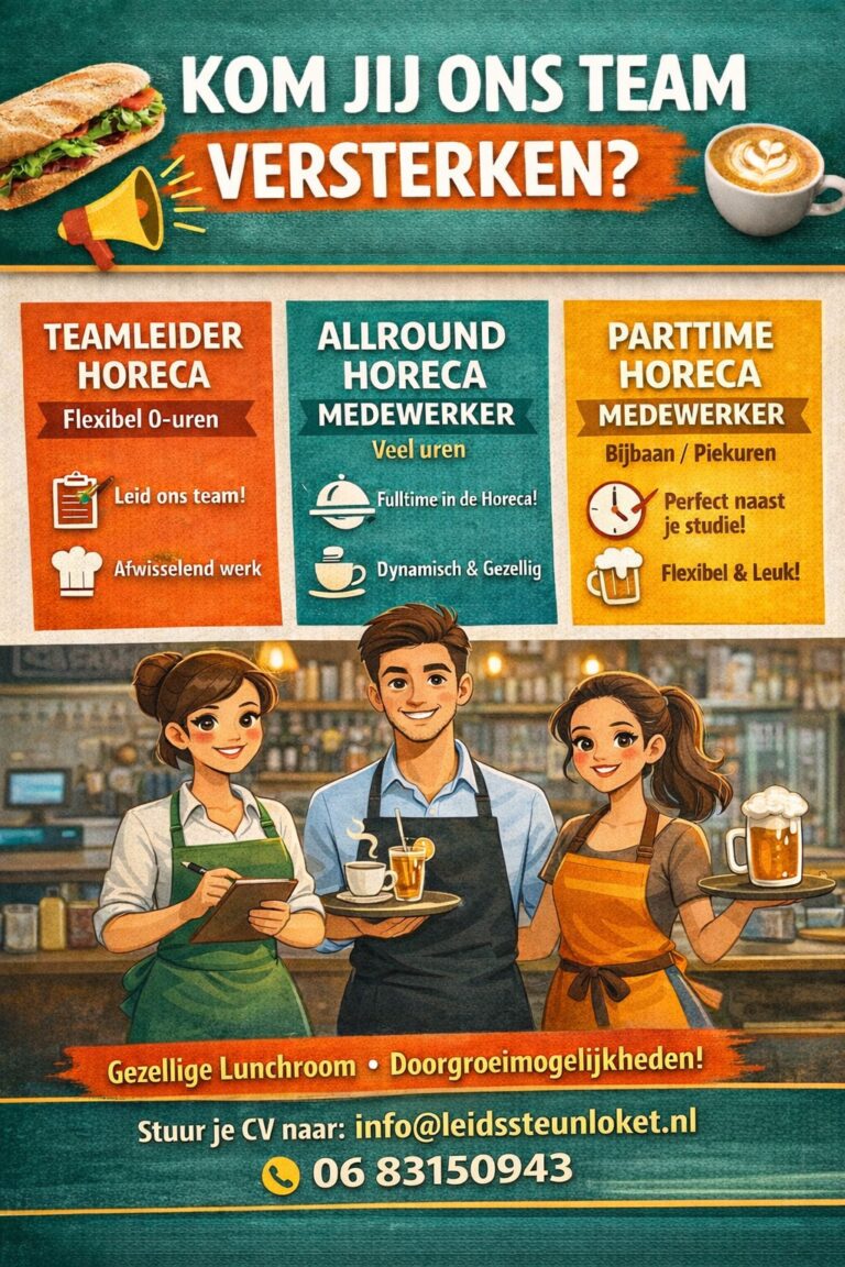 Voor drukke momenten zoeken wij een flexibele medewerker die helpt tijdens lunchdrukte, weekenden en terrasdagen.